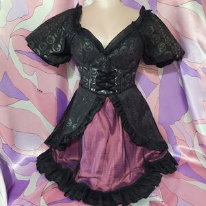 -Black cat DVA dress (has tear inside zipper lining (photo 4) shows some wear and stains to the lining inside the dress.