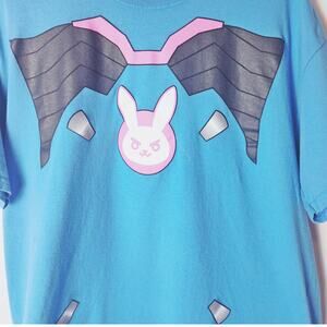 Show off your love for Overwatch with this D.Va Cosplay T-Shirt in size large! Featuring a bold design in blue, this shirt brings your favorite character to life. While the shirt is in great condition overall, it does have a small hole in the back, which is reflected in the price. Perfect for cosplay or casual wear, it’s a must-have for any Overwatch fan. Don't miss out on this iconic D.Va piece—add it to your collection today and show off your gamer style!