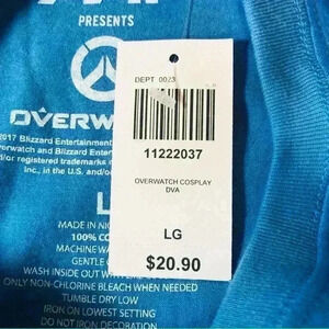 2017 Overwatch D.Va T Shirt Large Cosplay Unisex Blue Graphic Blizzard Hot Topic NWT.