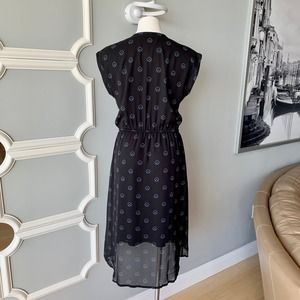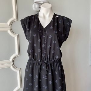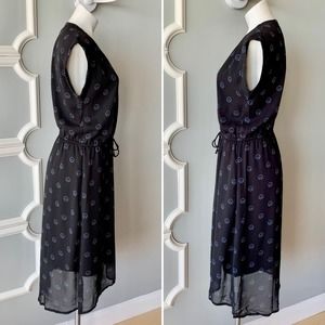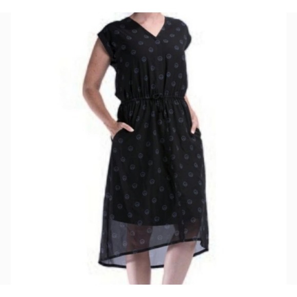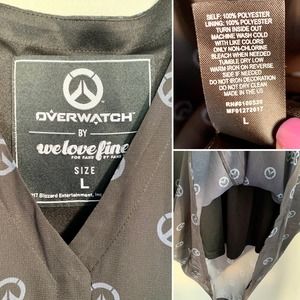 Overwatch Logo Tie Waist Chiffon Cosplay Midi Dress in Black Size Large. Brand new without tags. Sleeveless and fully lined with an asymmetrical hem. Featuring cap sleeves, side pockets, and a drawstring tie waist. Perfect for that chic lounge look which running errands or as a coverup for the beach.