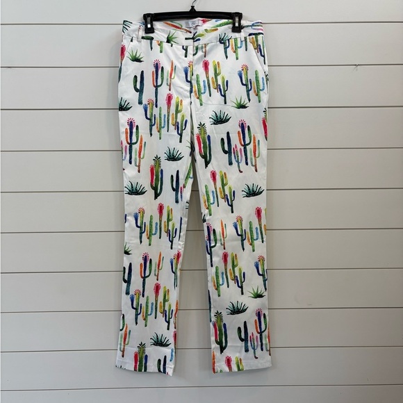 Playful cactus print on bright chinos. Adds a fun touch to any outfit.