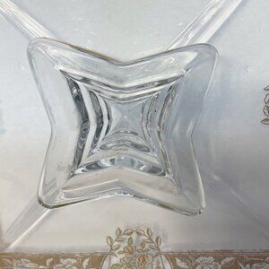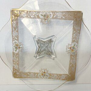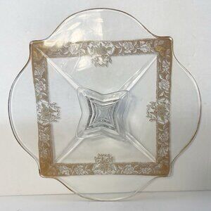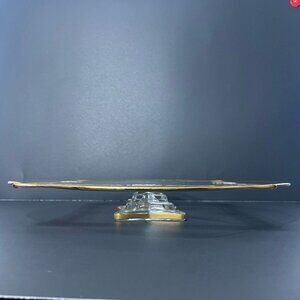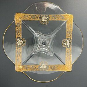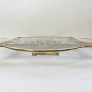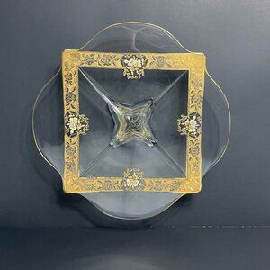 Ovington’s Alhambra Glass Cake Pedestal Platter Gold Floral Inlay Elegant Shape