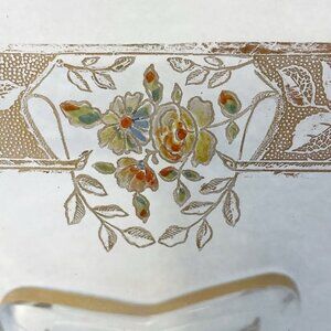 This platter is free from any chips, cracks or flaws. The gold ban floral pattern shows some wear in areas. The gold band across the pedestal and platter is fully intact and barely shows any rubbing. Amazing antique condition.