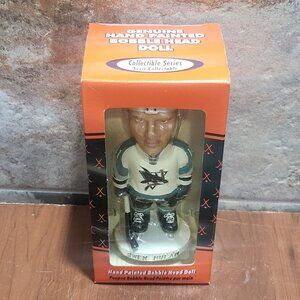 Features: The bobblehead is hand-painted and features vibrant multi-color detailing. The text on the box confirms it is a "Hand Painted Bobble Head Doll" and "Poupée Bobble Head Peinte par main".
