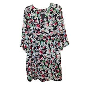 Owen Womens Shift Dress Size XXL Multi Floral 3/4 Belle Sleeve Lined Stretch