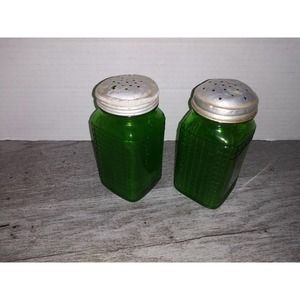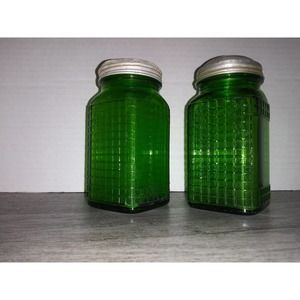 Owens Illinois 4.5" Green Depression Glass Shaker Canisters - 1930s waffle