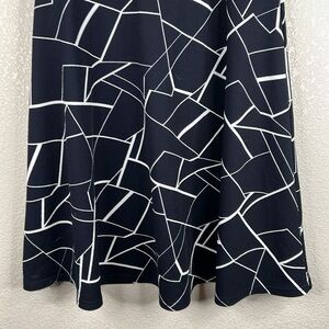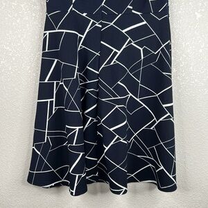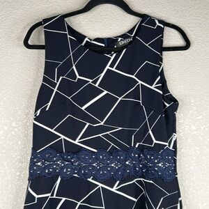 Owin Blue & White Geo Print with Lace Waist Sleeveless Midi Dress Size Large