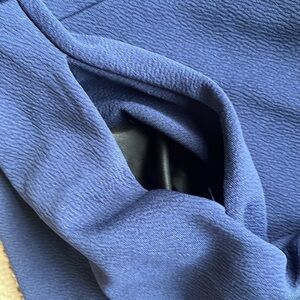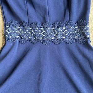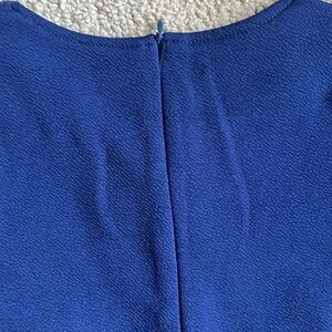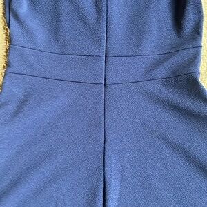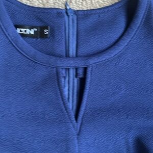 Great condition size small 3/4 sleeve length poly/spandex floral waist flare and flare dress in navy blue. Back hidden zipper. Keyhole front. Side pockets!