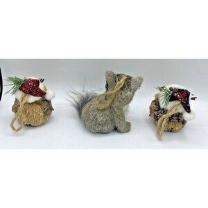 Owl Arctic Fox Animal Ornament Lot 3 Sisal Faux Fur Nature Rustic Cabin Woodland
