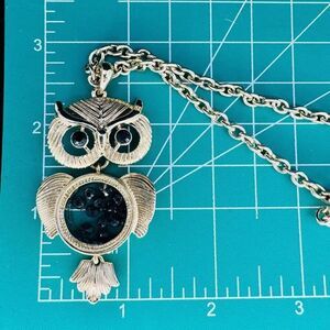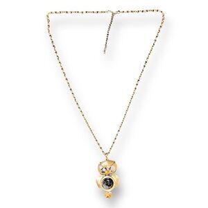 Owl Articulated Pendant Long Gold Plated Chain Necklace with 25-28" Black Bead