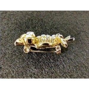 Owl Bird Aurora Borealis Rhinestone Vintage Gold Tone Pin Brooch.