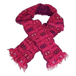 Owl Bird Scarf Rectangle Sparkle Thread Wool Blend Red Purple Guillaume De Mons