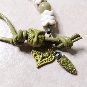 Owl Bracelet! Easy Close Button Closure! 3 Wise Owls! Fire Agates + Stone Beads