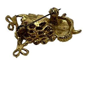 Owl Brooch Clear Rhinestone Eyes Filigree Gold Tone Vintage Pin