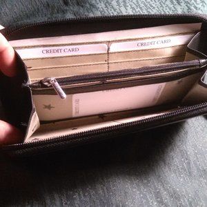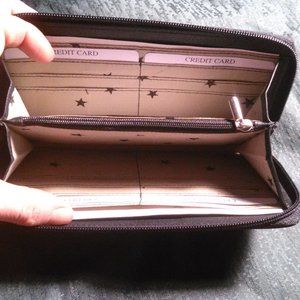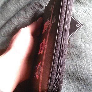Charming black wallet featuring a colorful owl design. Perfect for adding a playful touch to your accessories. This wallet is leather and has the RFID protection for credit cards.