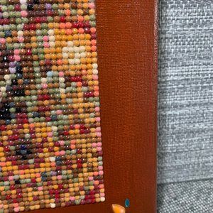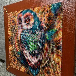 For any & all fantasy lovers!! This is a gorgeous piece of diamond art with a whimsical owl. The piece was mounted on an 12 x 12 inch stretched canvas. All four sides of the canvas have been painted in a gorgeous rust color & the piece has been sealed to protect against dust. Cutest little owl EVER! The hardware has been installed on the back so all this piece needs is wall space!