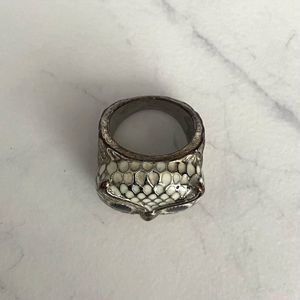 Metal and enamel. Fashion costume. some wear on the metal finish. Size 5.5-6