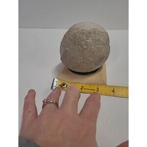 This owl figurine is a small stone statue with a primitive design, perfect for a table top on a wooden base. The gray color and bird outline make it a charming addition to any indoor or outdoor space. Its animal theme and unique shape, inspired by nature, will add character to your home or garden decor.