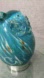 Owl Hand Blown Art Glass Paperweight Teal Gold Clear Glass Glaze Art 4.5"