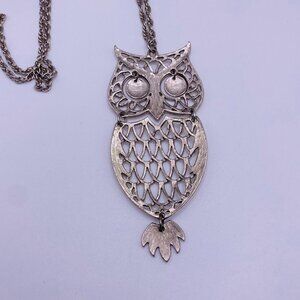 Owl Hinged Pendant Silver Tone Necklace 22”.