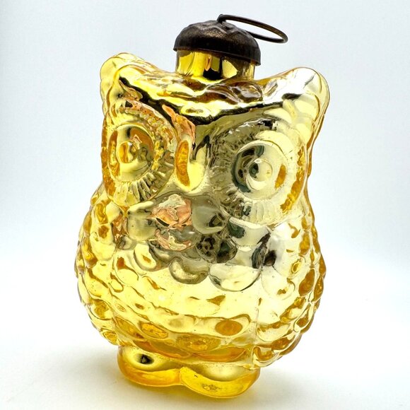 Owl Mercury Glass Ornament Kugel Style Lemon Yellow Christmas 4"