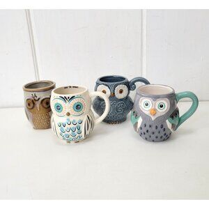 These owl-themed ceramic mugs feature intricate designs and are microwave and dishwasher safe. Ideal for serving hot beverages with a touch of personality.
