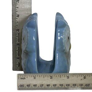 Owl Napkin Holder Ceramic Artisan Hand Painted Functional Counter Art Blue Tan