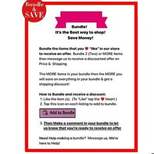 BUNDLE to save on shipping & to be eligible for a price discount. (Add items to your Bundle by tapping the “+” shopping bag at the bottom of the listing)