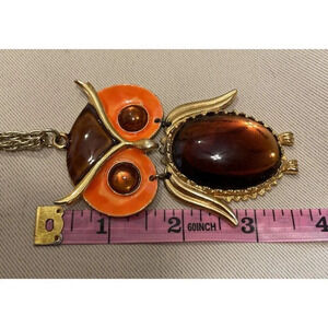 Owl Necklace Lucite Eyes Belly 3D Hinged Gold Tone Articulated Vintage Retro