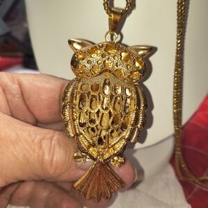 Owl Pendant Necklace, Chain is Betsey Johnson, Owl Is Unmarked, likely Betsey