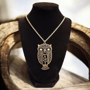Owl Pendant on 15" Gold Tone Chain 3" x 1 1/2"