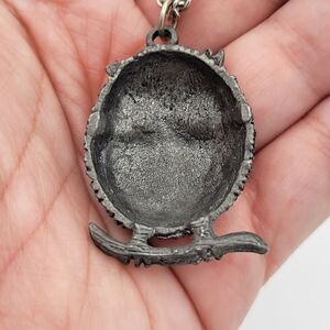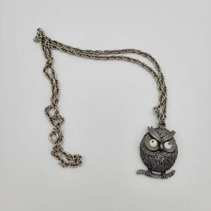 In good vintage condition. A touch of wear to the owl pendant as shown. Super Kitschy & a fun piece. 24" chain. 1.5" pendant