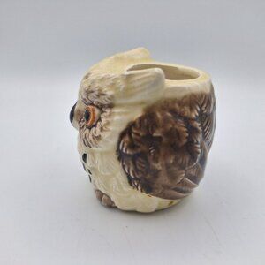 Add a touch of nostalgia to your space with this charming vintage owl pot decor. Made in Japan during the 1970s, this tiny 2-inch brown bird piece complements any cottagecore aesthetic and adds character to your home or office.