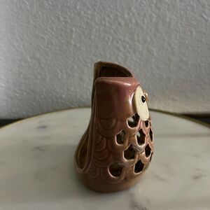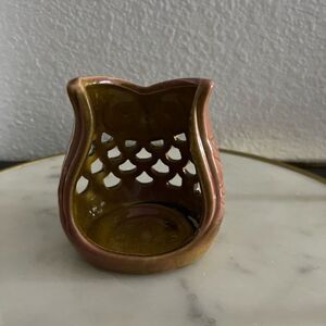 Owl Pottery Candle Boho Shabby Chic Brown Green EUC