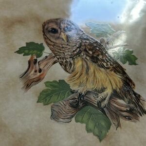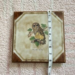 Barred Owl Tile Art. Wouldn’t recommend using this as a trivet as heat may damage the owl art.