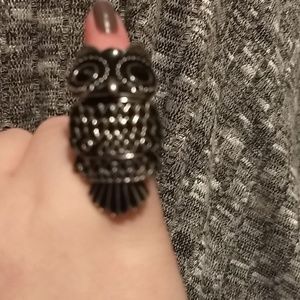 Black and sliver owl ring not sure on the size but is quite small