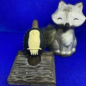 Owl White Black Cameo Brass Adjustable Ring Birds