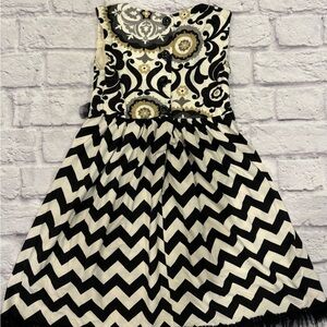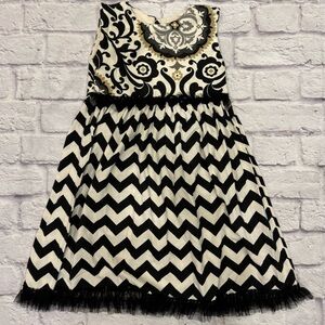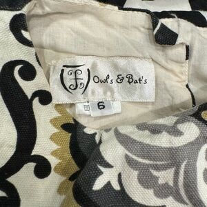 15% off bundles of 2 or more Owls & Bats girl’s dress Size 6 Perfect for Halloween! Mixed fabrics with black accents Button back closure Chevron stripes Floral design Sleeveless Made in USA 95% cotton 5% spandex Measurements: 12” armpit to armpit 25” in length Hard to find Excellent pre-owned condition