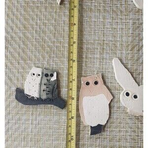 Owls Wind Chimes Driftwood Rustic Cabin Decor w/ Painted Ceramic Figs Handmade