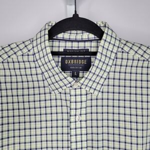 Oxbridge by Ron Bennett Modern Fit Green & Navy Plaid Button Front Shirt Size L