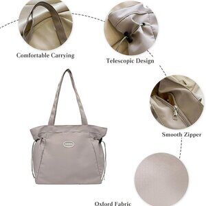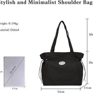 Features: A sleek and versatile tote with four handy pockets to keep your essentials organized — main compartment, two open inner pockets, and a zippered inner pocket. Made from durable, waterproof oxford fabric with a polyester lining, this bag is perfect for daily errands, work, or casual outings. The adjustable drawstring adds a customizable touch, while the lightweight design makes it comfortable to carry for hours. The chic look pairs easily with any outfit, making it a go-to accessory for women of all ages.
