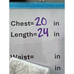 Chest = 20 inches, Length = 24 inches