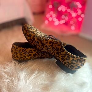 Oxfords Leopard Print Black/Brown Canvas Pointed Toe Lace-Up Women’s Size 7.5