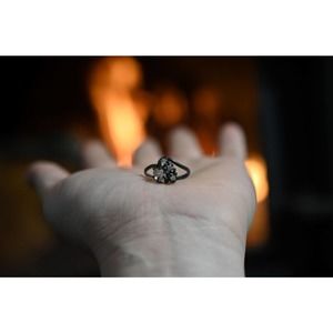 This ring features raw, fresh from the earth California Diamonds, set in solid sterling silver which has been oxidized to give the ring an antiqued look.