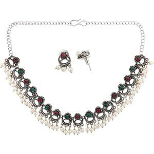 Features: This set includes a stunning oxidized copper necklace and matching earrings, perfect for adding a boho chic vibe to any outfit. The necklace features an adjustable chain with 'S' hook closure, so you can get just the right fit. The earrings are push-back and approximately 0.9 inches long, making them comfortable yet eye-catching. Embellished with floral motifs, faux pearls, and crystals, this set combines traditional details with a modern touch.