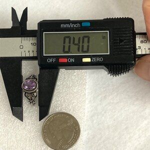 Oxidized Sterling Silver 925 Oval Amethyst Scrollwork Openwork Ring