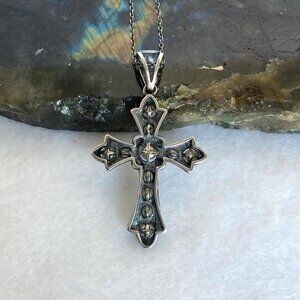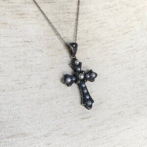 Oxidized Sterling Silver 925 Pearl & Marcasite Cross Pendant Necklace