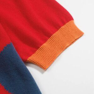 Oxknit Vintage Red Style V-Neck Knitted Polo Shirt NWT 100% Cotton Small