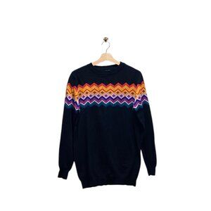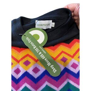 Oxknitstore Fair Isle Print Cotton Crewneck Sweater Black Size 2X NWT Coastal