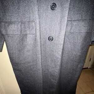 This item is in perfect pre-owned condition. The coat is center vented, single breast, with three buttons, and two outer pockets.